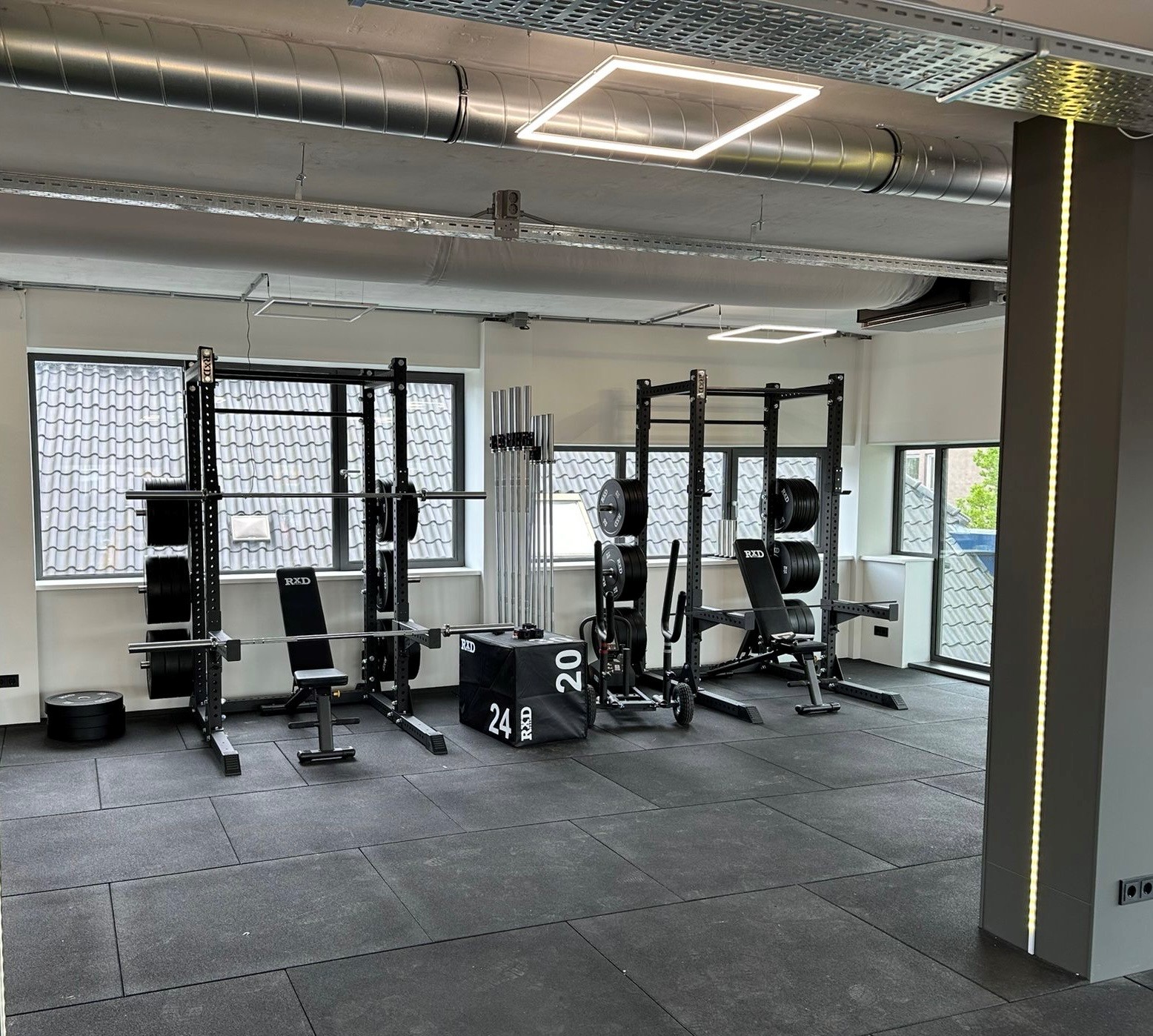 - Hyrox- en Crossfit ruimtes met uitdagende zones voor kracht, conditie en functionele training